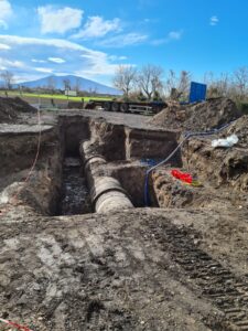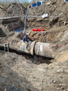 Installazione da parte del service di Idroambiente di un giunto DUOFIT su una condotta in cemento armato precompresso, DN 1150, pressione 8 bar.