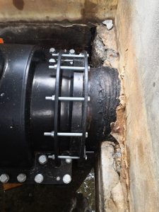 nstallazione di un giunto di riparazione DUOFIT speciale, su una condotta con derivazione flangiata danneggiata.