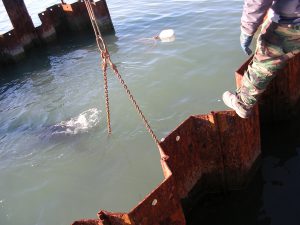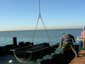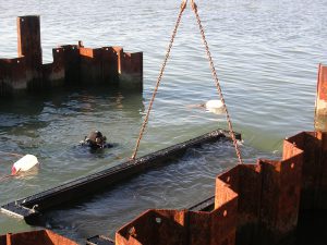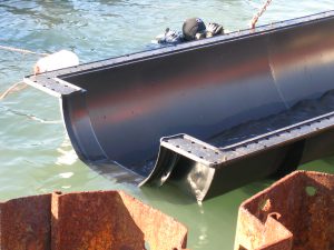 Riparazione di un tubo in acciaio DN 800, parte di una sezione inclinata di una tubazione per l'acqua potabile sottomarina.