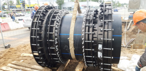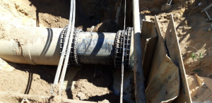 A seguito di un danneggiamento sulla tubazione in PRFV 1400 della rete idrica principale, si è deciso di sostituire la parte danneggiata del sistema di alimentazione idrica con un inserto in tubo di polietilene DN 1200. Allo stesso tempo era necessario fornire una protezione affidabile contro il movimento assiale del tubo in PE quando si lavora sotto pressione. Per risolvere questo problema, due giunti di riduzione con un sistema End-Restraint per tubo PE sono stati appositamente fabbricati da Nova Siria. Installazione e test hanno avuto successo.