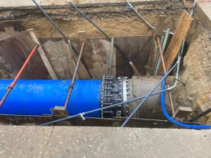 Installazione di un giunto Multigrip DN900 flangia con sistema anti-sfilamento per il collegamento tra tubazioni in ghisa
