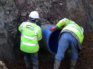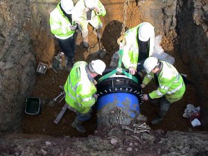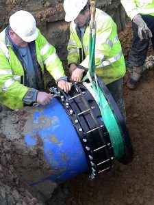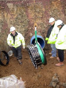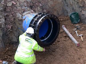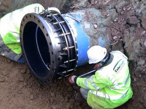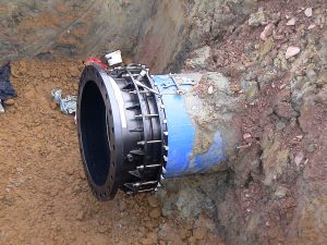 Intervento di collegamento di tubazioni in polietilene attraverso giunti MULTIGRIP flangiati.